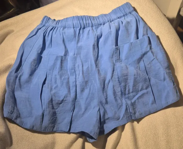 Pantalón corto de color azul para niña. - Cintura elástica. - Bolsillos delanteros.