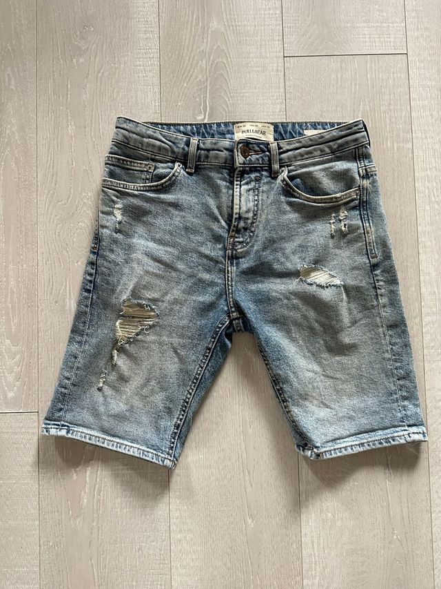 Pantalón corto vaquero Pull&Bear desgastado.