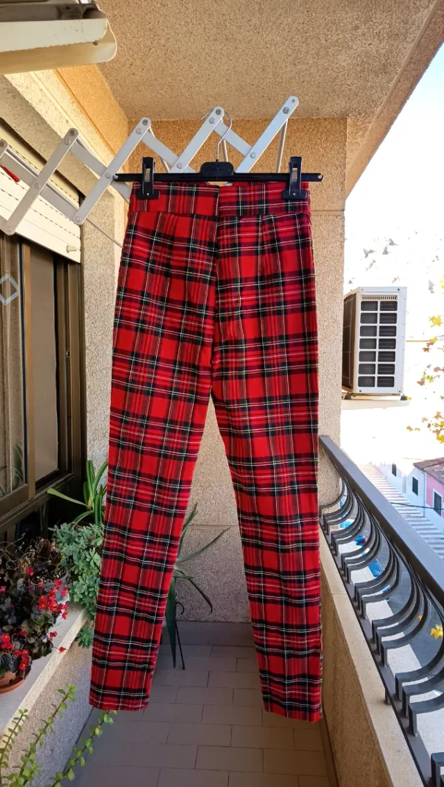 Pantalón cuadros rojo pitillo