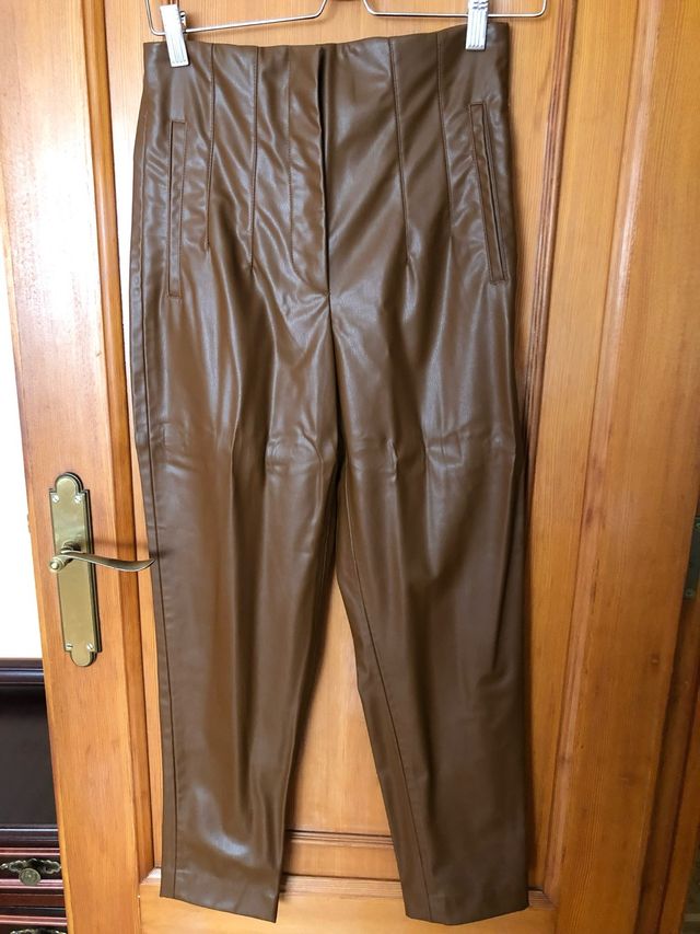 Pantalón cuero marrón Zara. Nuevo con etiqueta