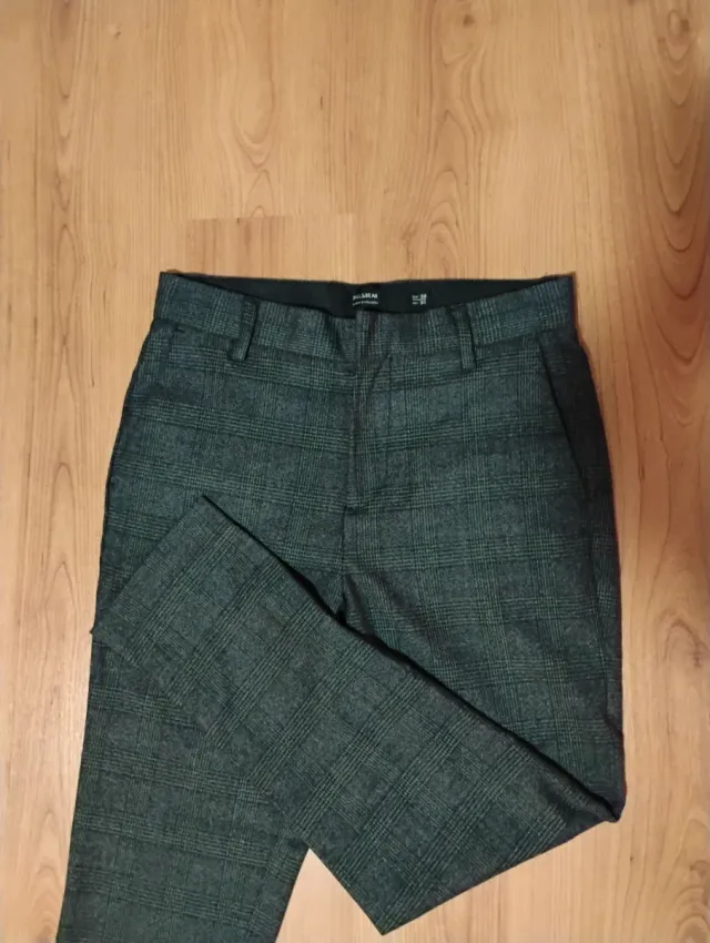 Pantalón de cuadros Pull&Bear gris/negro, Talla M.