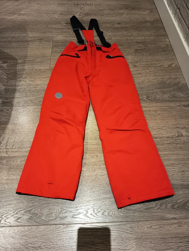 Detalles del productoPantalón de esquí de la marca COLOR KIDS, modelo AIR-FLO 8.000, color rojo con cremalleras en negro. Talla 8 (124-134). Para niño de entre 7 y 9 años. Tejido repelente al agua, e interior muy cálido. Ajuste de cintura con dos velcros laterales. Tirantes ajustables desmontables. Hebillas en cintura para cinturón (cinturón no incluido). Bolsillos laterales con cremallera sellada para evitar entrada de agua. Polainas en la parte inferior de las piernas. Ideal para disfrutar de la nieve con comodidad. Prenda técnica para niño/ /niña. Esquí, ski, snow, jugar/pasear nieve, etc. Tiene alguna mancha en inferior de piernas, que apenas se ve.