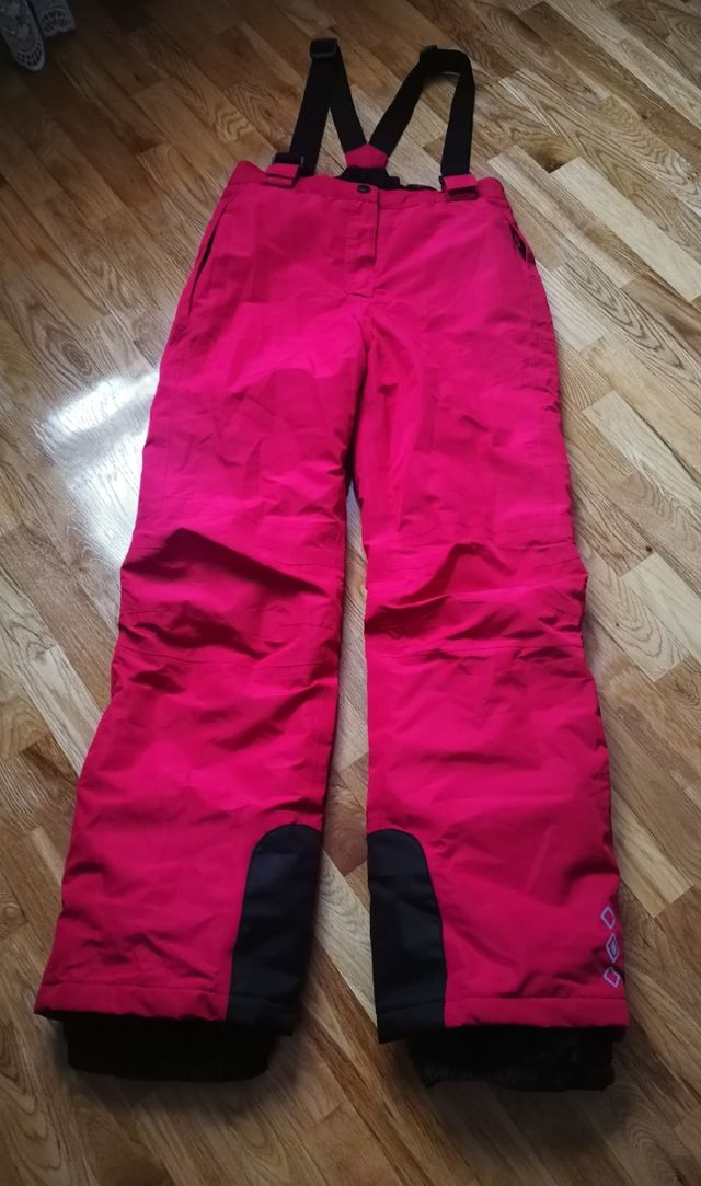 Detalles del productoPantalón de esquí o snowboard color fucsia oscuro y negro, acolchado, con goma y refuerzo en la espalda, tirantes de goma, que se puede quitar y poner cinturón. Talla 11/12(146 /152).