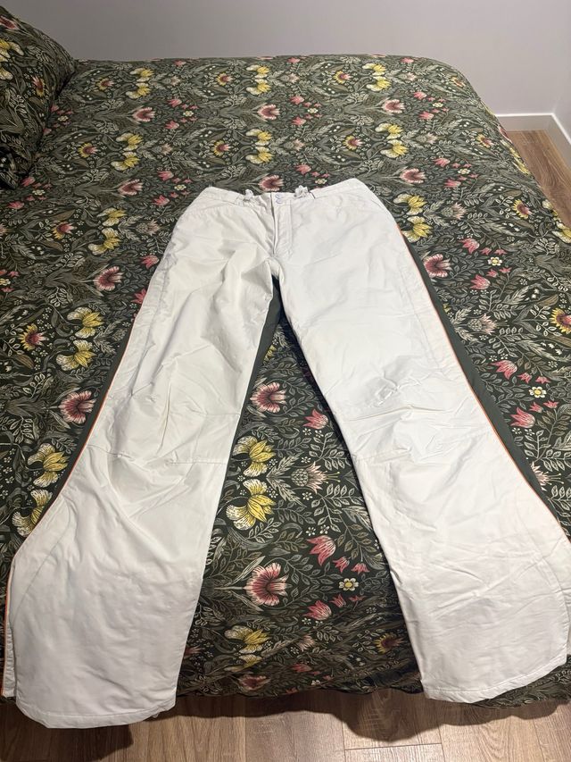 Pantalón de esquí para chica talla 36 - Color blanco y verde - Detalle de raya lateral naranja.