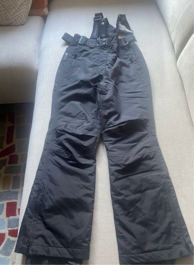Pantalón de esquí negro para niño talla 10, está nuevo - Tirantes ajustables. - Cremalleras en los bajos de las perneras. - Bolsillos frontales con cremallera.