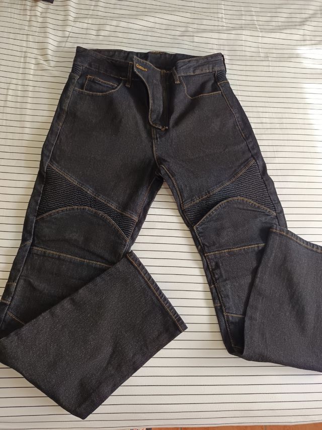 Detalles del productoPantalón de moto de color negro, con un diseño moderno y detalles de costura.Talla L .Mide 45 de cintura y 108 cm de largo