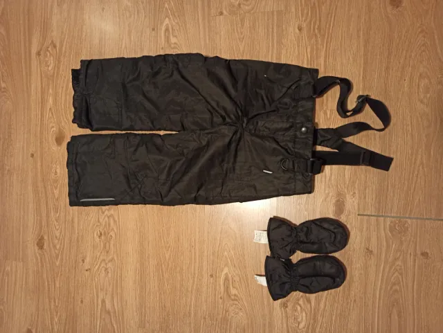 Detalles del productoPantalón de nieve negro con tirantes, ideal para mantener el calor en la montaña. Incluye manoplas a juego.