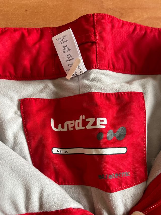 Pantalón de nieve Wed'ze de color rojo. - Tejido exterior: 100% Poliamida. - Yugo: 100% Poliéster. - Forro: 100% Poliéster. - Zona para escribir nombre.