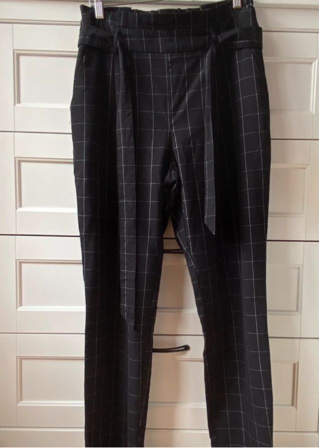 Pantalón de pinzas cuadros negro