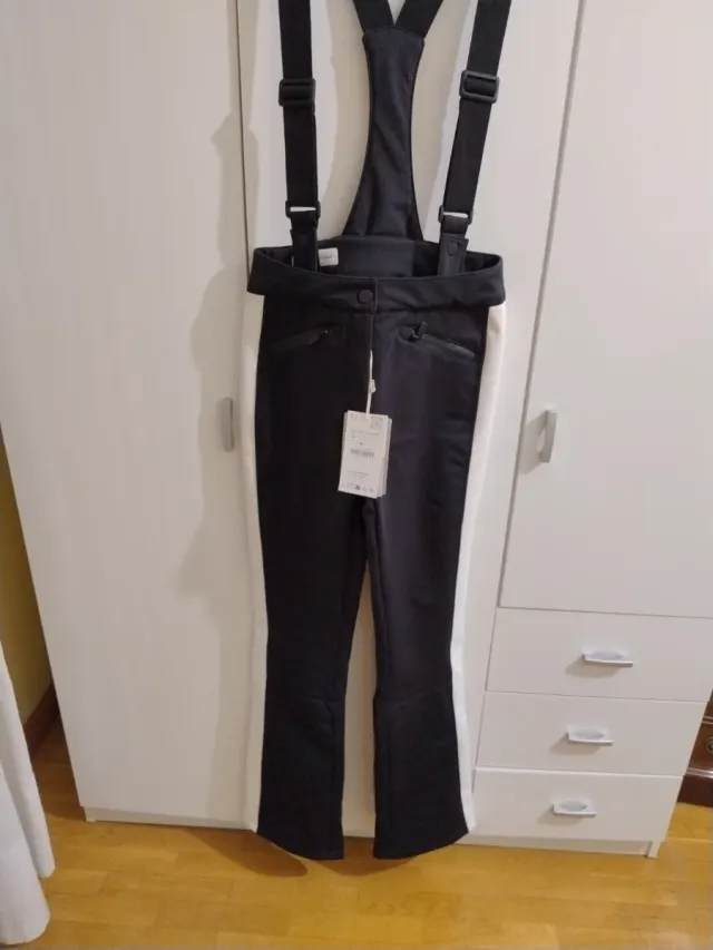 Pantalón de esquí de Zara en talla S. Diseño moderno y funcional. Con tirantes y tecnología Recco - Color negro. - Tirantes ajustables. - Bolsillos con cremallera.