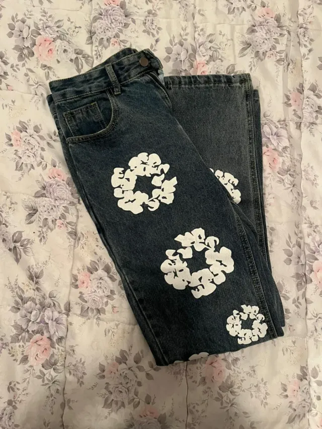 Pantalón denim con estampado floral