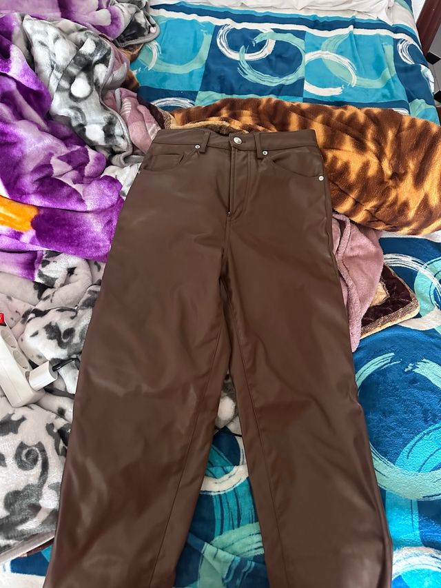 Pantalón efecto piel marrón