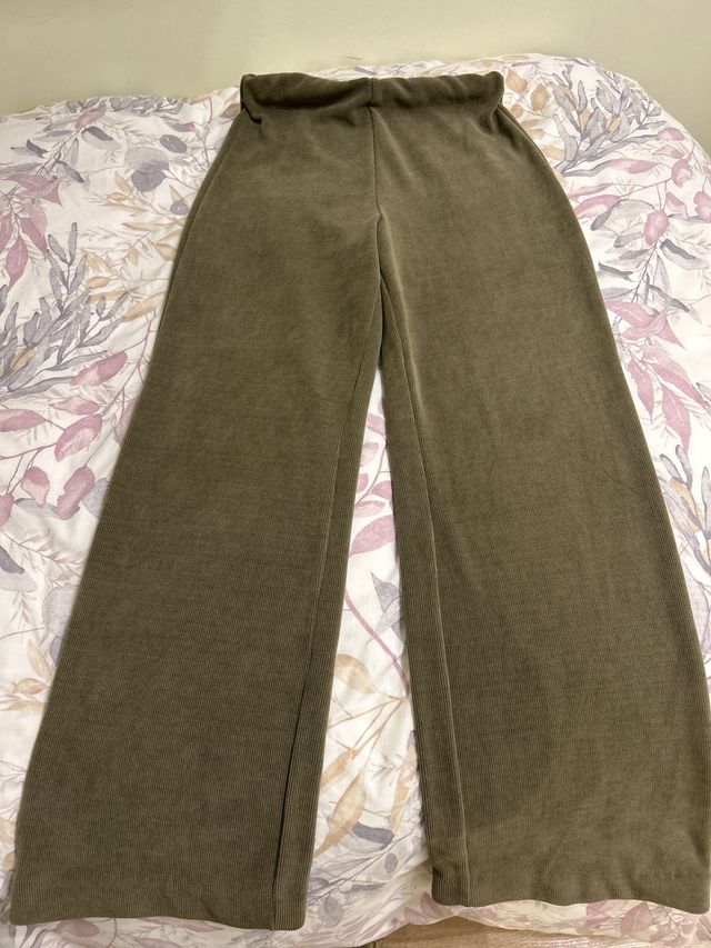 Pantalón elástico ancho verde oliva
