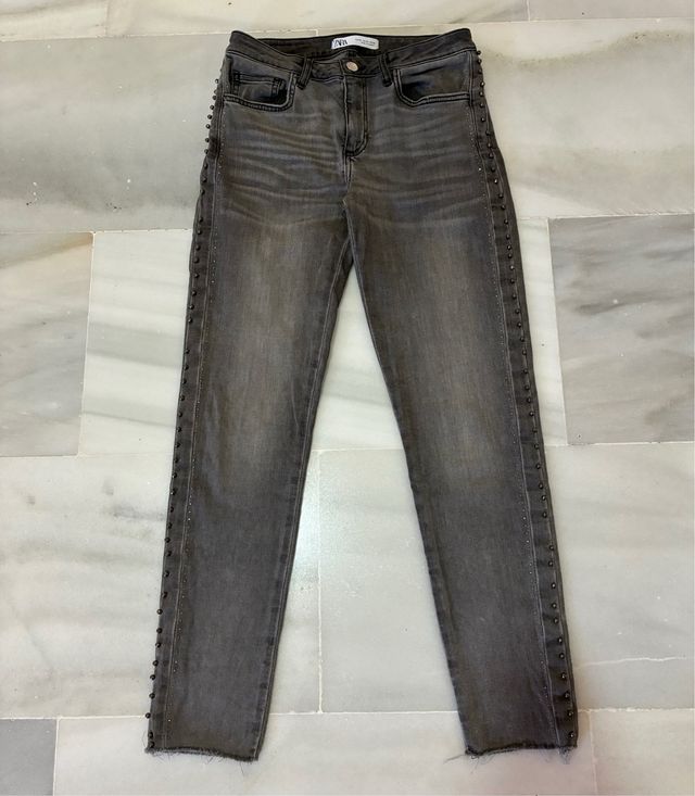 Pantalón elastico Zara Talla 36 con Tachuelas Gris