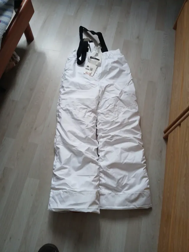 Pantalón de esquí Decathlon para niña en talla 14. - Color blanco. - Tirantes negros ajustables. - Tejido impermeable y cortavientos.