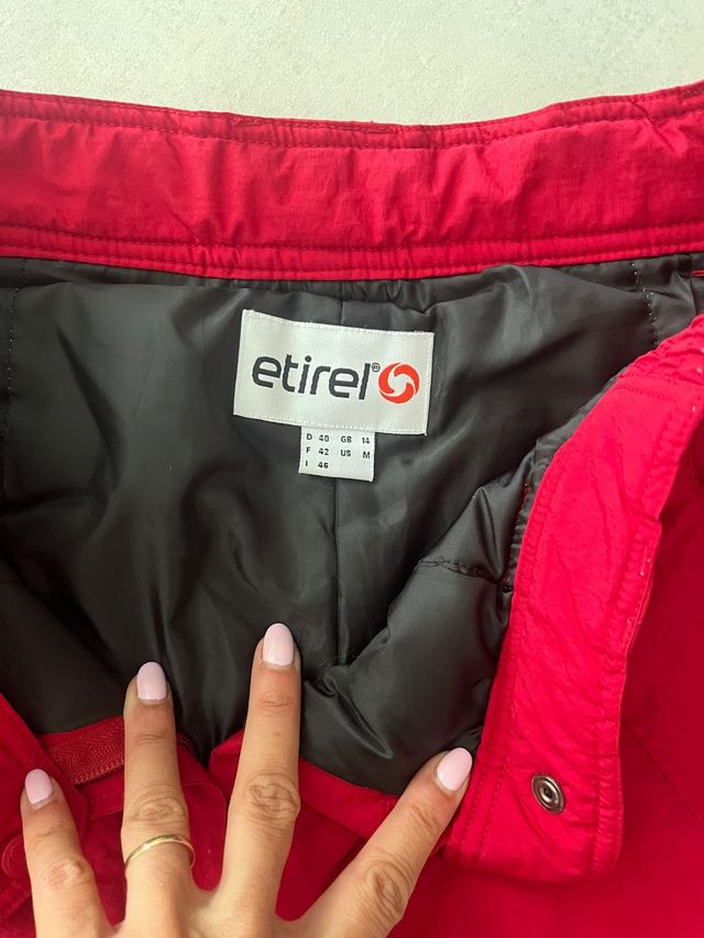Detalles del productoPantalón de esquí de la marca Etirell, talla M. Es de color rojo intenso y tiene un diseño impecable.