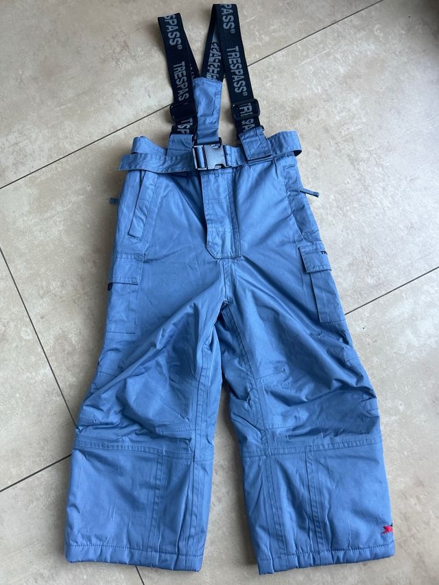 En perfecto estado. Waterproof y windproof. Com forro interior y bajos con goma para encima de las botas. Con cinturón y tirantes regulables.