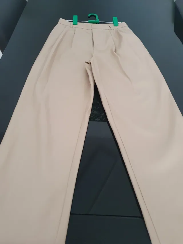 Pantalón imitación piel beige mujer