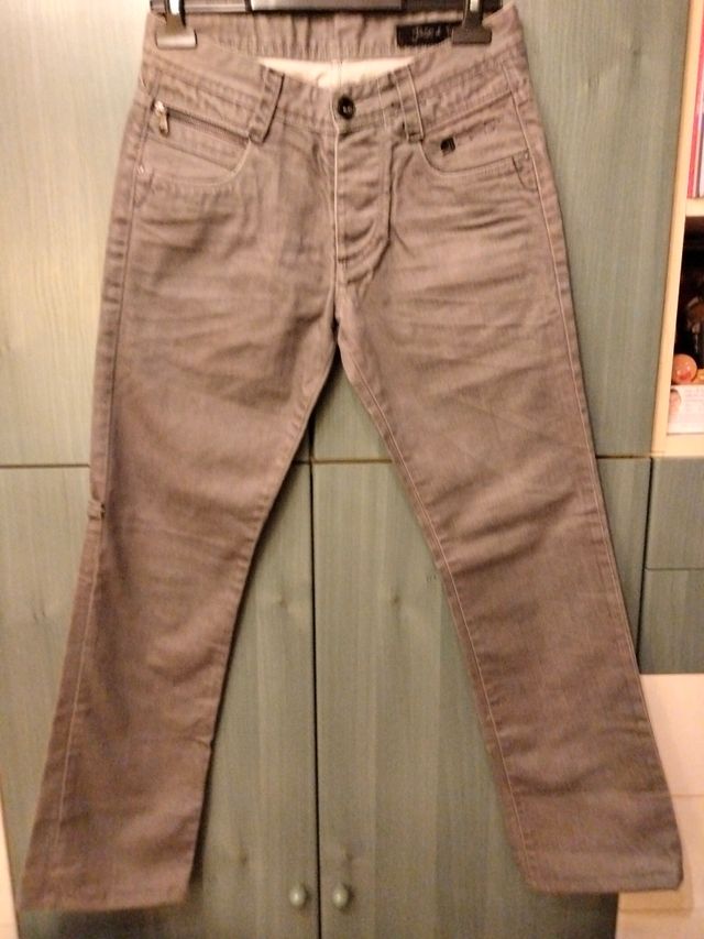 Pantalón gris Jack & Jones talla 29/32", cierre con botones, lleva bolsillo monedero con cremallera. Perfecto estado. Recoger en Barrio de Delicias.