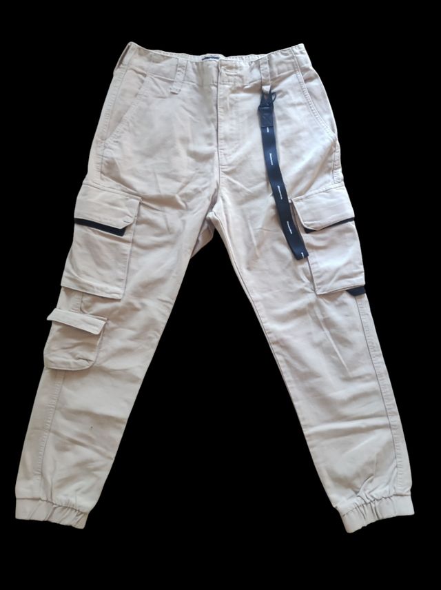 Pantalón jogger beige con cinturón