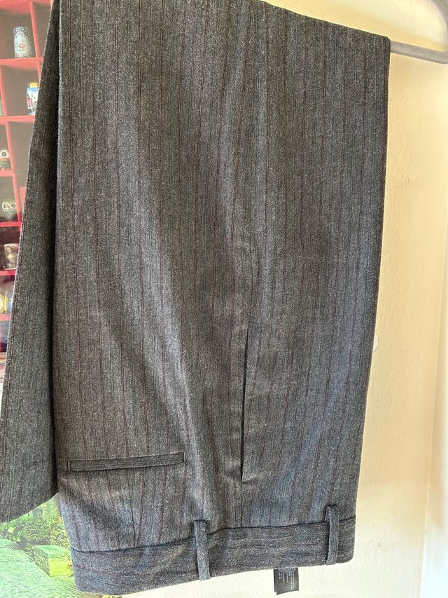 Pantalón lana fina rayas granate