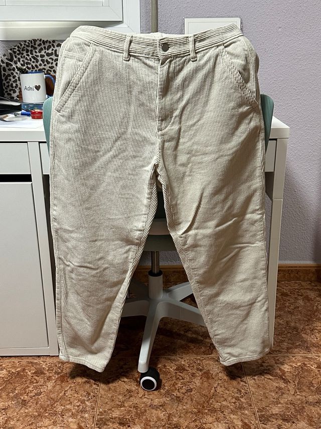 Pantalón largo beige pana, talla 40. Marca Zara.