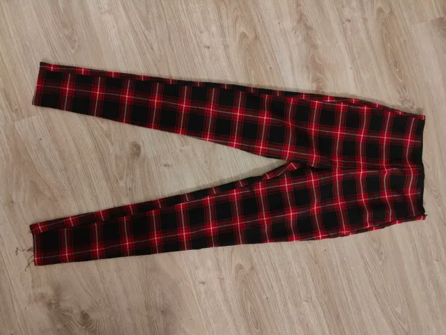 Pantalón legging pitillo cuadros rojo y negro
