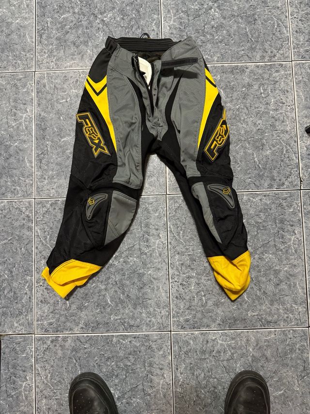 Pantalón de motocross con diseño llamativo en negro, gris y amarillo. - Marca Fox. - Paneles de ventilación. - Ajuste cómodo. talla 8 años escucho ofertas