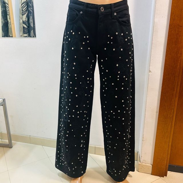 Pantalón negro con cristales y bordado
