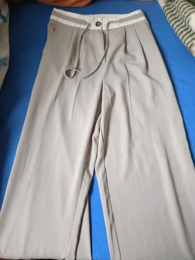 Pantalón palazzo fluido beige