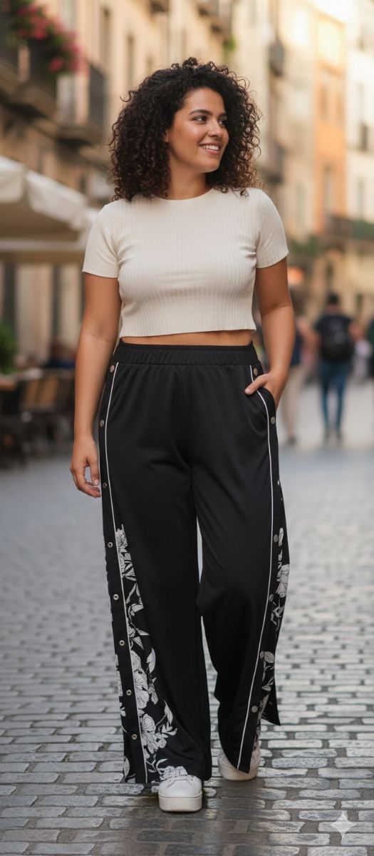 Pantalón Palazzo Negro con Estampado Floral
