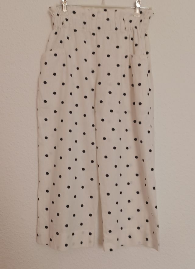 Pantalón Pirata Zara Blanco Lunares