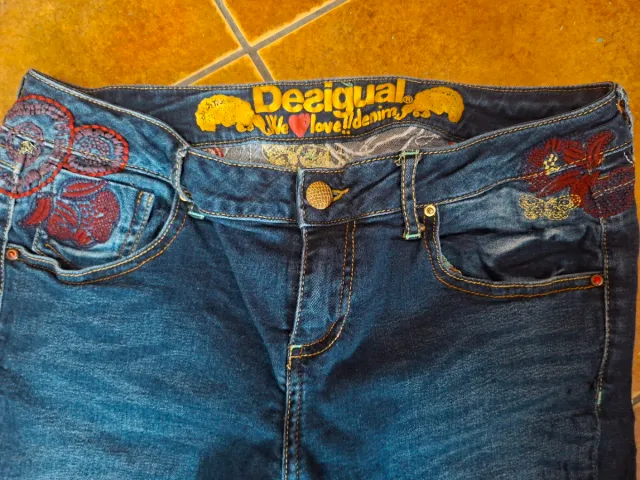 Pantalón pitillo Desigual azul con bordados