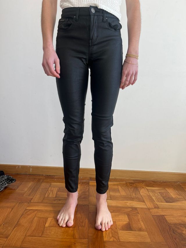 Pantalón pitillo efecto piel