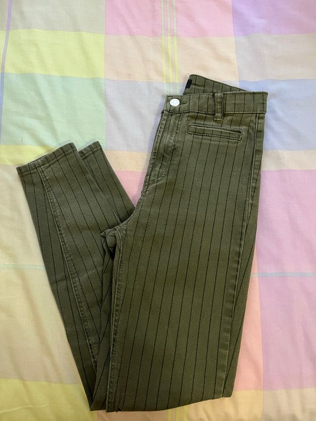 Pantalón Skinny Verde Oliva / militar Rayas Negras