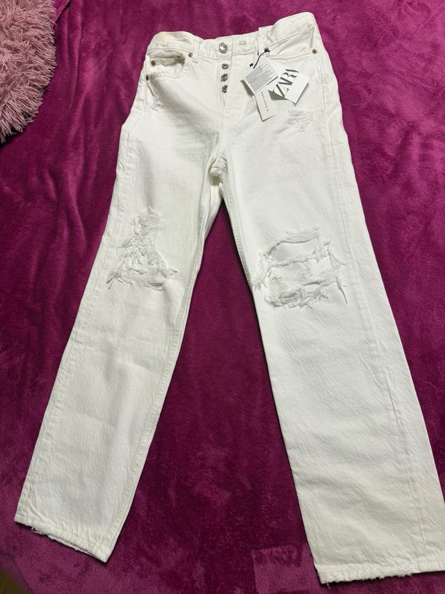 Pantalón vaquero blanco Zara roto