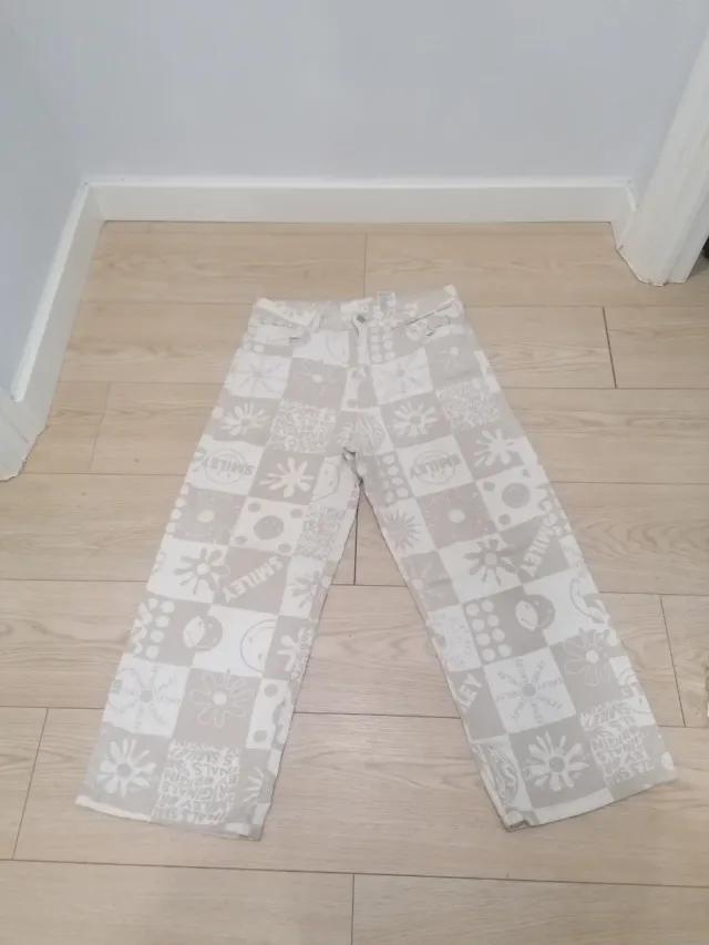 Pantalón vaquero estampado beige y blanco