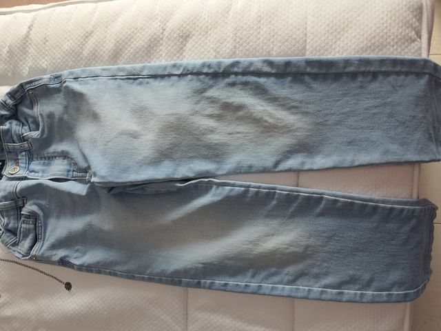 Pantalón vaquero de color azul claro, ideal para niños de 7 a 8 años. - Tejido vaquero. - Cintura elástica.