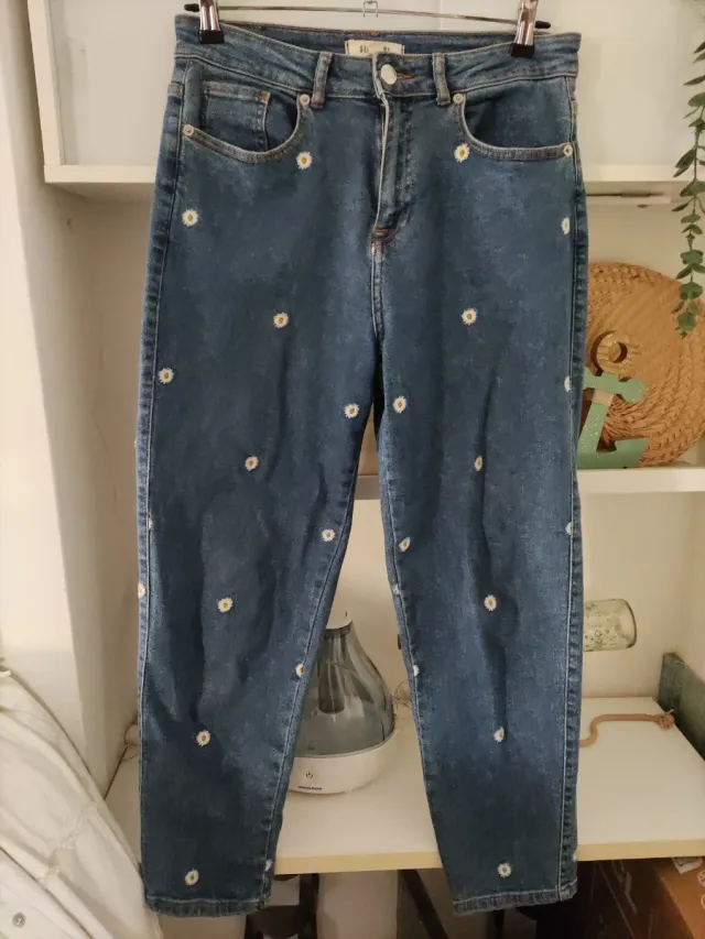 Pantalón vaquero Slowlove flores bordadas
