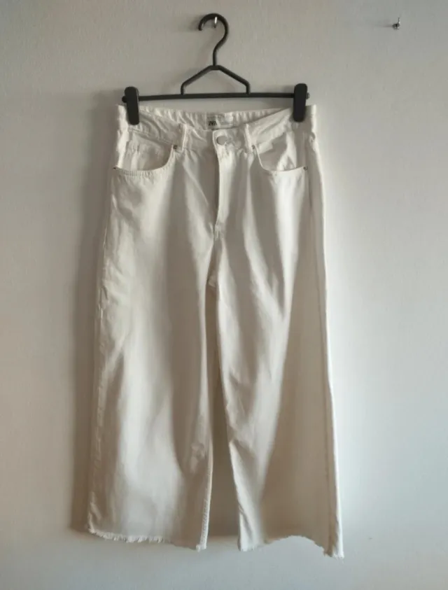 Pantalón Zara Blanco Ancho Mujer