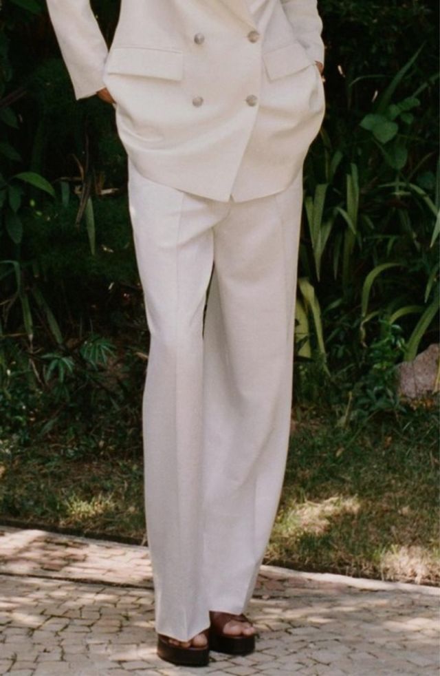 Pantalón Zara Blanco Pinzas Jacquard Talla M