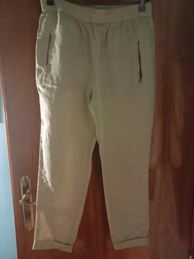 Pantalón Zara Lino Verde Oliva