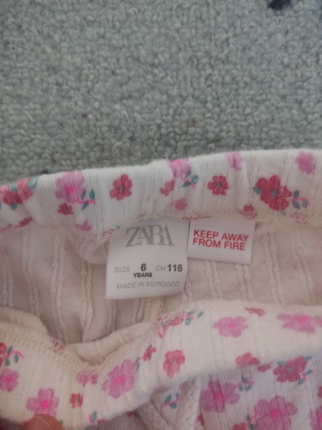 Pantalón de Zara para niña con estampado floral. - Talla 6 años (116 cm). - Fabricado en Marruecos. - Advertencia: Mantener alejado del fuego.