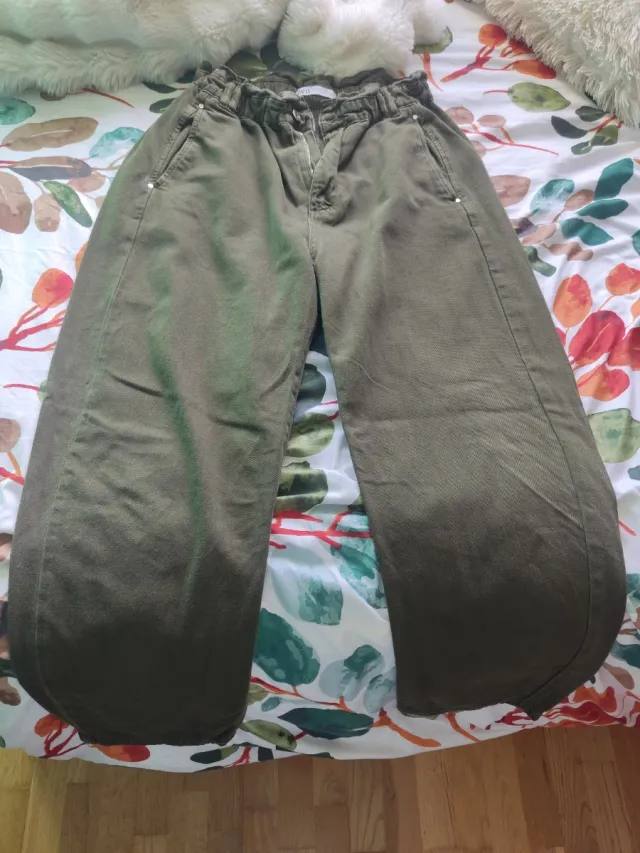 Pantalón Zara Talla 42 Verde Militar