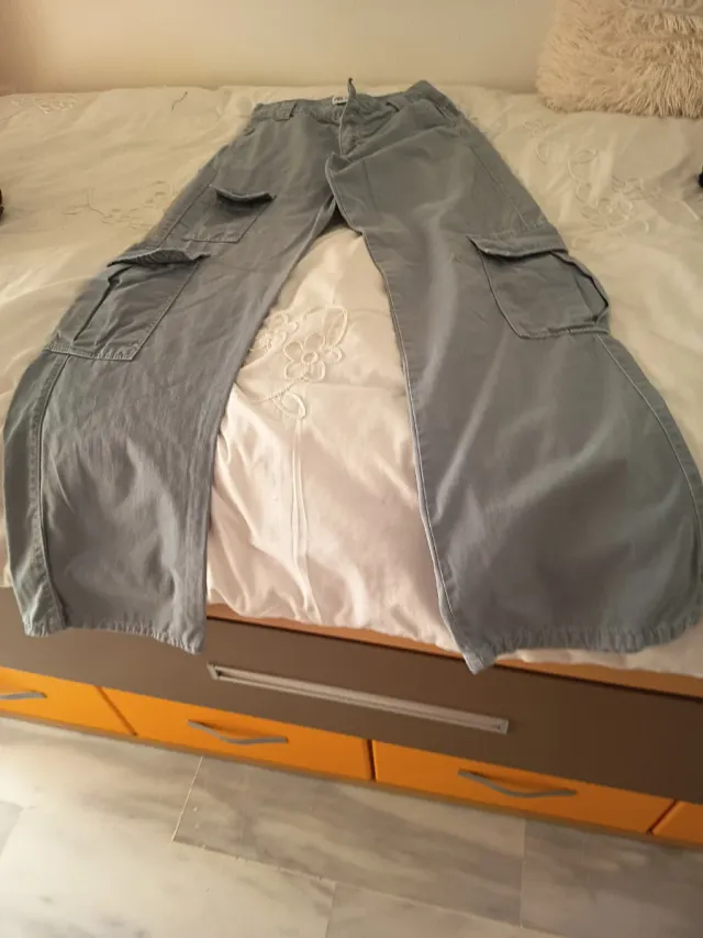 Pantalones anchos cargo grises