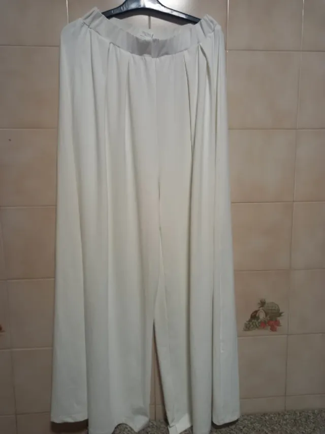 Pantalones blancos de tela ligera y fluida. (Pantalón blanco corto nuevo 10€) - Cintura elástica. - Piernas anchas y acampanadas. - Diseño holgado 8€ largo