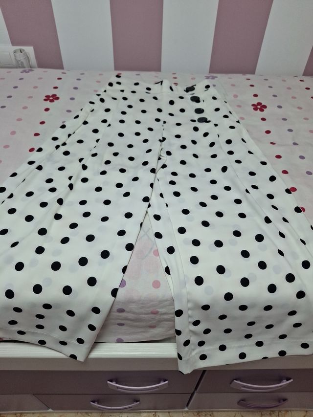 2 pantalones, blancos con lunares y negros