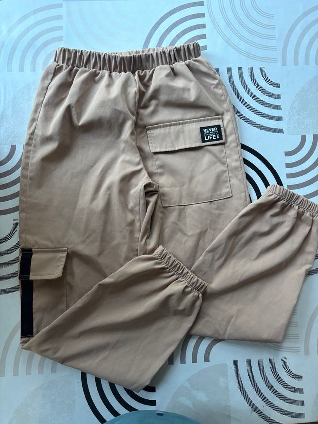 Pantalones cargo beige con bolsillos