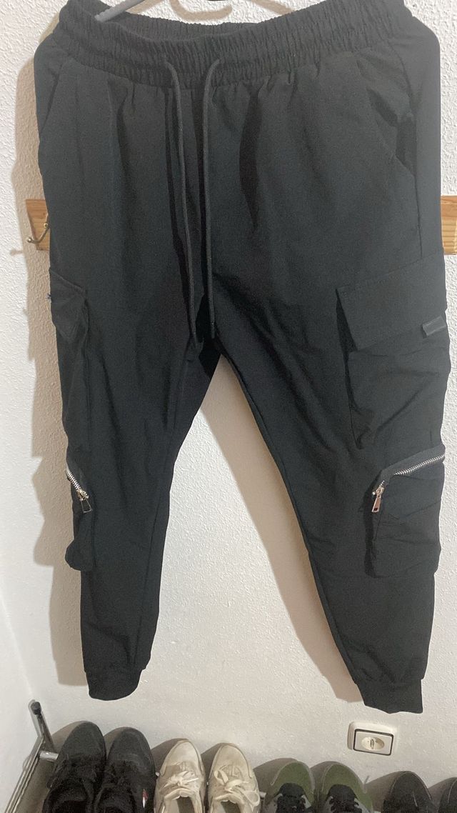 Pantalones cargo negros con cremalleras