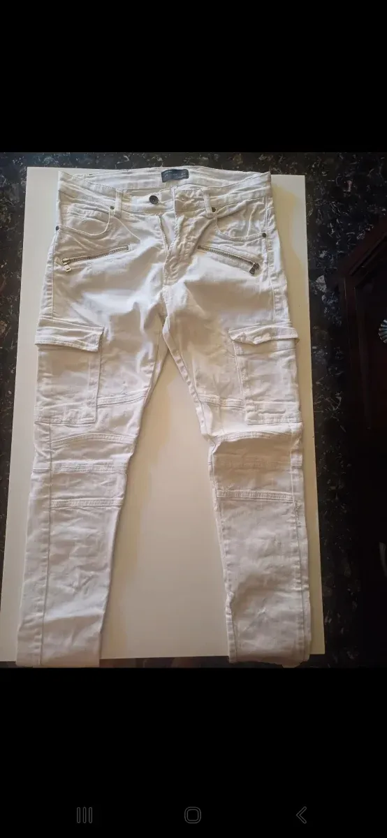 Pantalones cargo pitillo Zara blancos